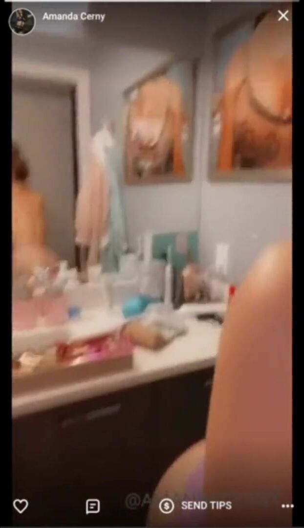 Amanda Cerny, Teasing Naked Body in Bathroom Mirror