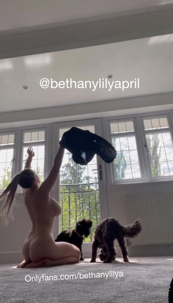 Bethany Lily, Curvy Babe in Naked Yoga with Dogs