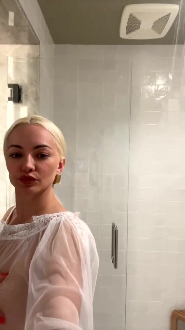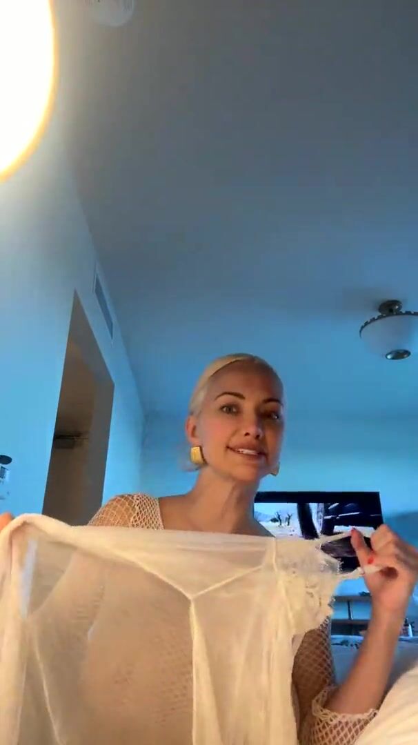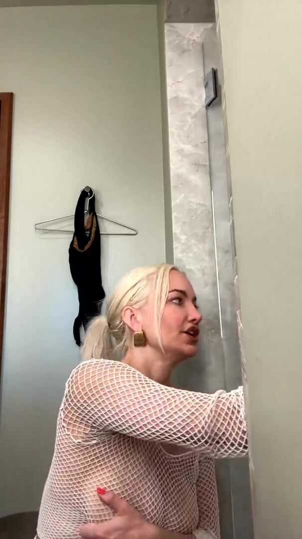 Lindsey Pelas teasing fishnet lingerie solo.