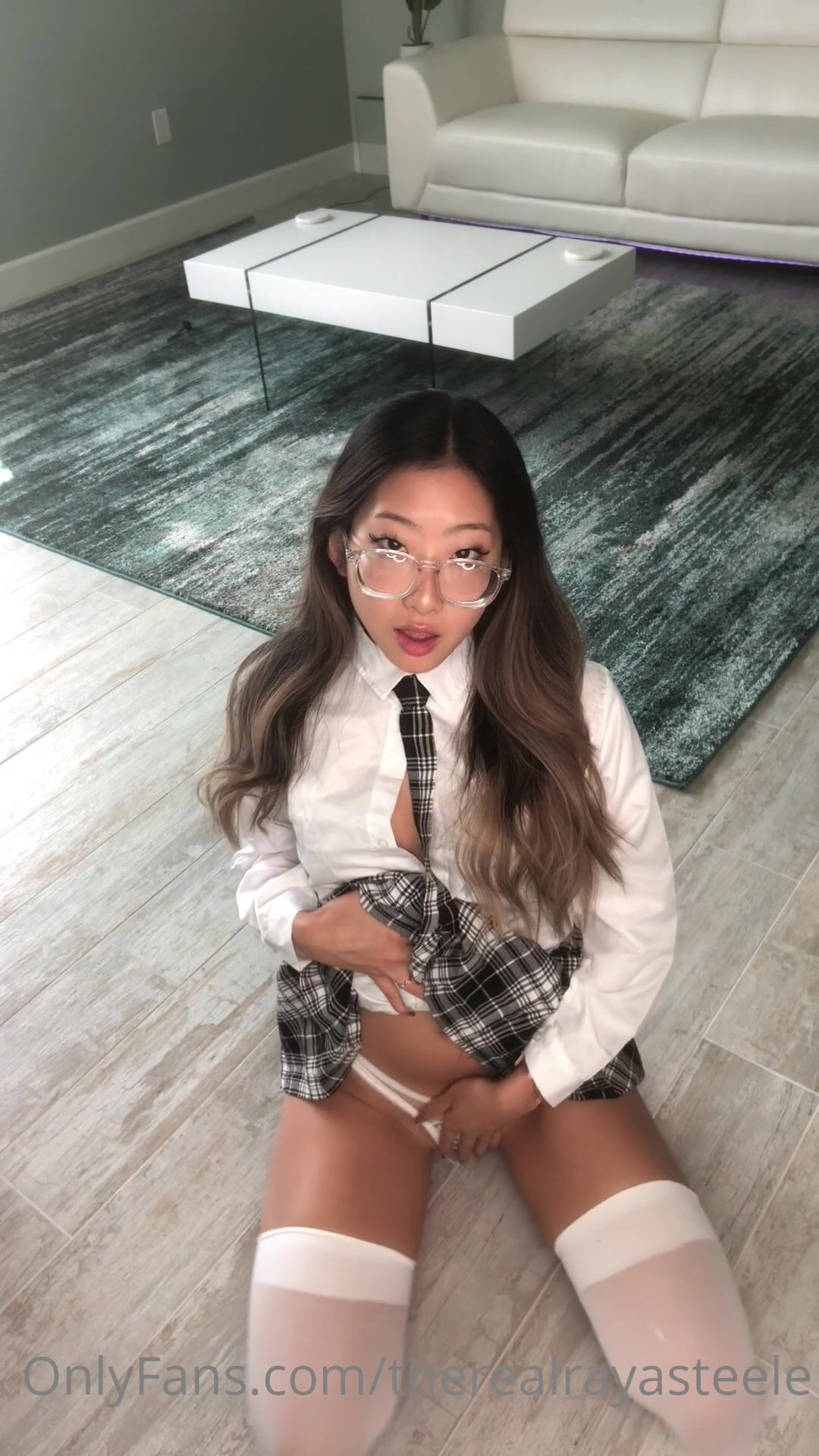 Aries Steele embodies the ultimate fantasy in glasses and a schoolgirl outfit, taking on a massive toy with enthusiasm. Her solo exploration in a short skirt builds to intense moments of self-pleasure, delivering a visually stunning display for admirers of youthful energy and bold play.
