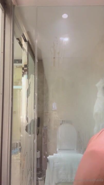 Mia Khalifa teasing large breasts hotel shower Arab solo. Wet temptation shines.