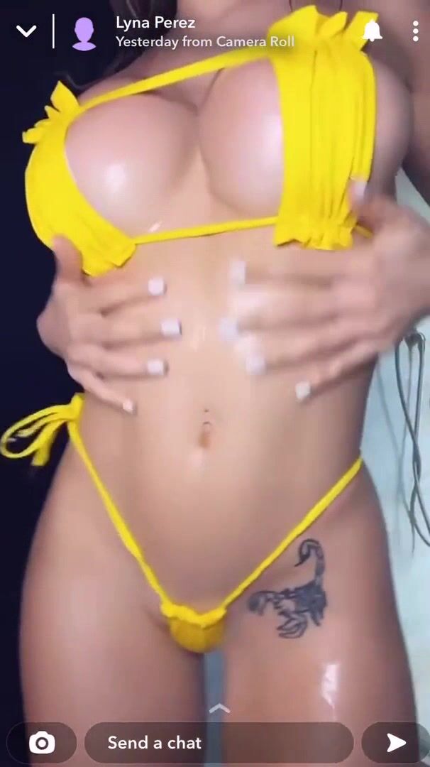 Lyna Perez yellow bikini oil-up tease bathroom livestream solo webcam live stream bathroom bikini. Slick glow pulses.