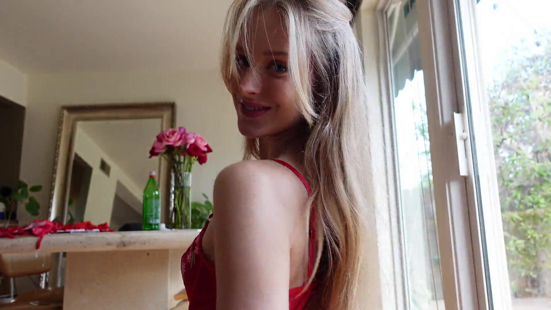 Caroline Zalog valentines red try-on, lingerie haul teasing with romantic flair in solo. Holiday elegance for outfit admirers.