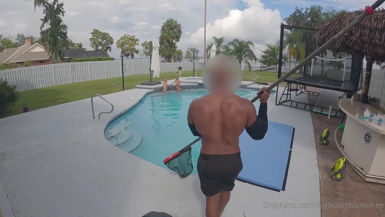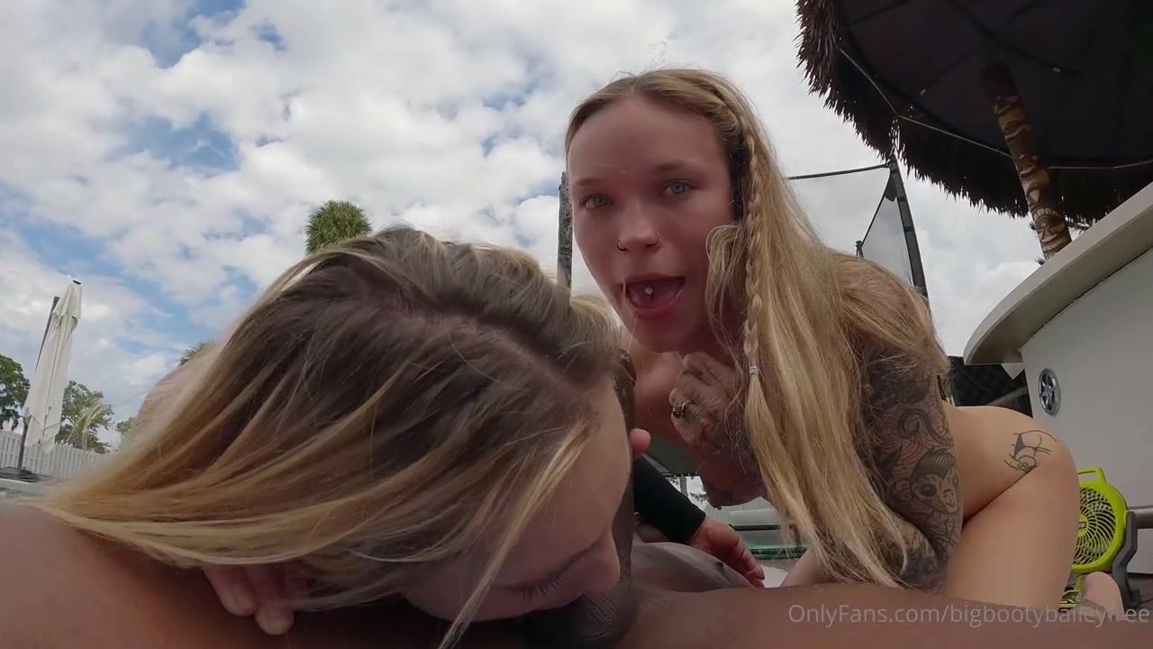 Bigbootybailey, Littlelyssyy, Poppichulo34, Two skinny teens taking turns on a black stud by the pool