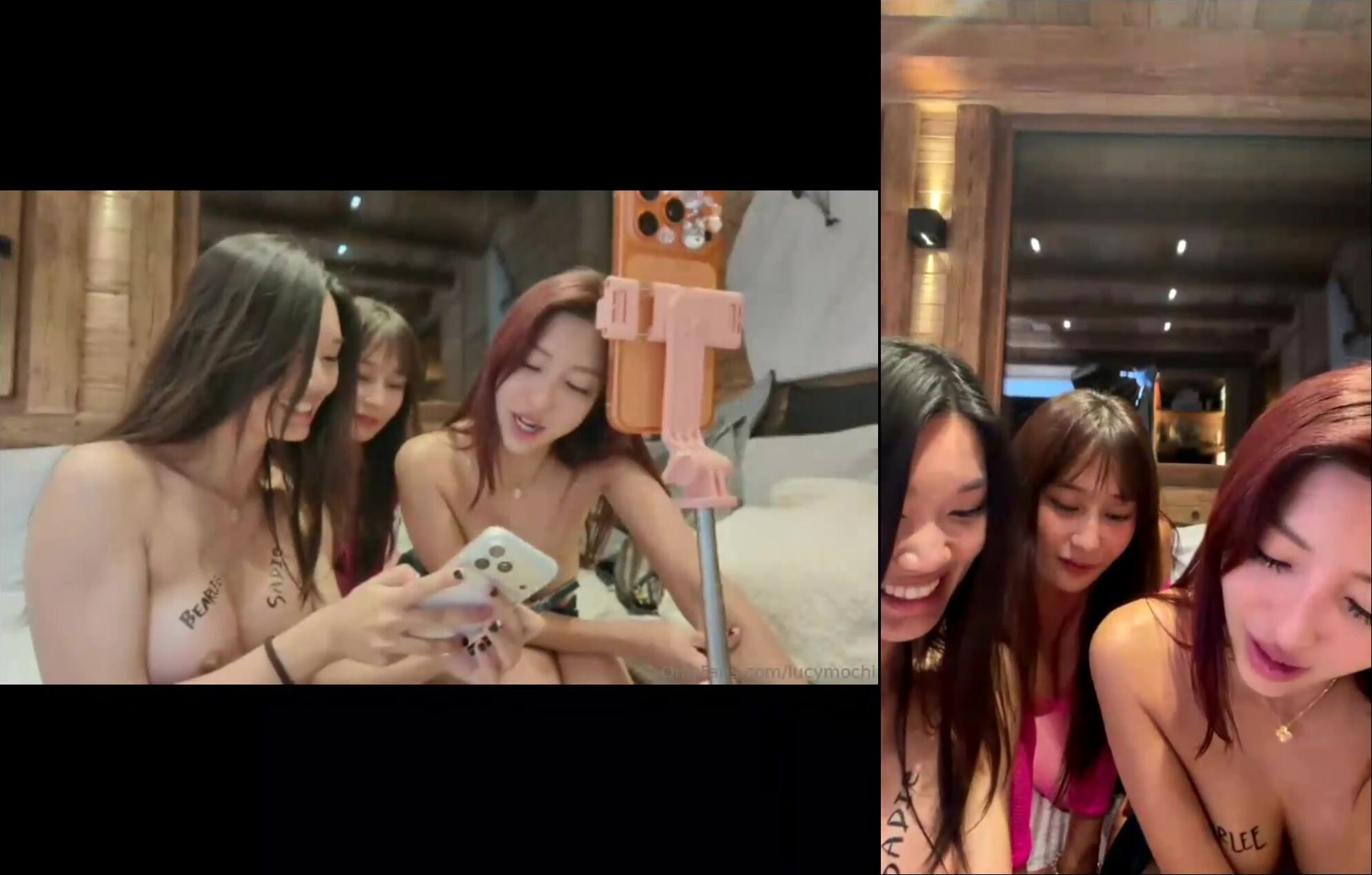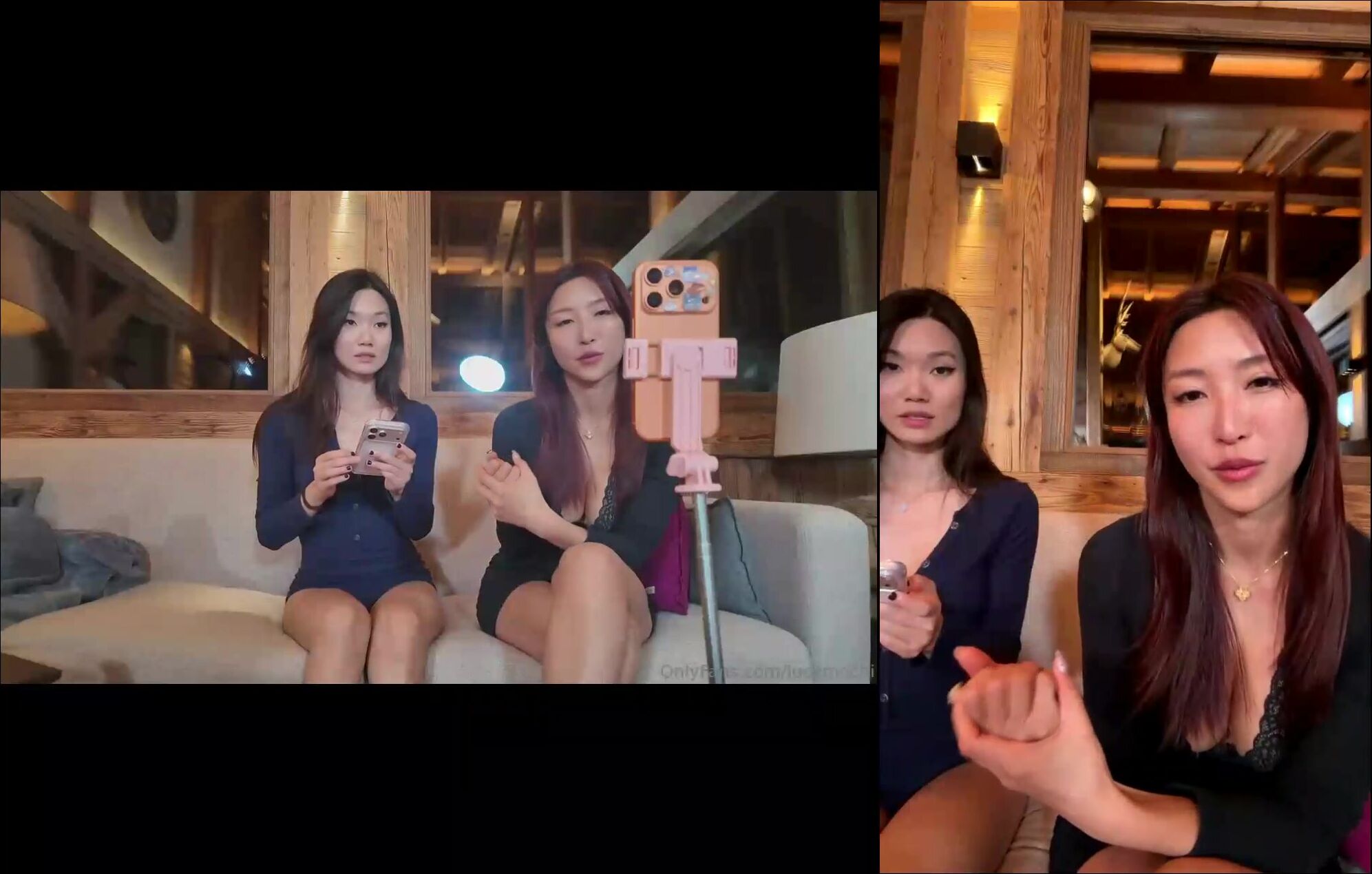 Lucy Mochi Mizukawa Sumire Two Cute Asian Beauties on Livestream Tease tease adorable Asian duo livestream seductive teasing naughty show