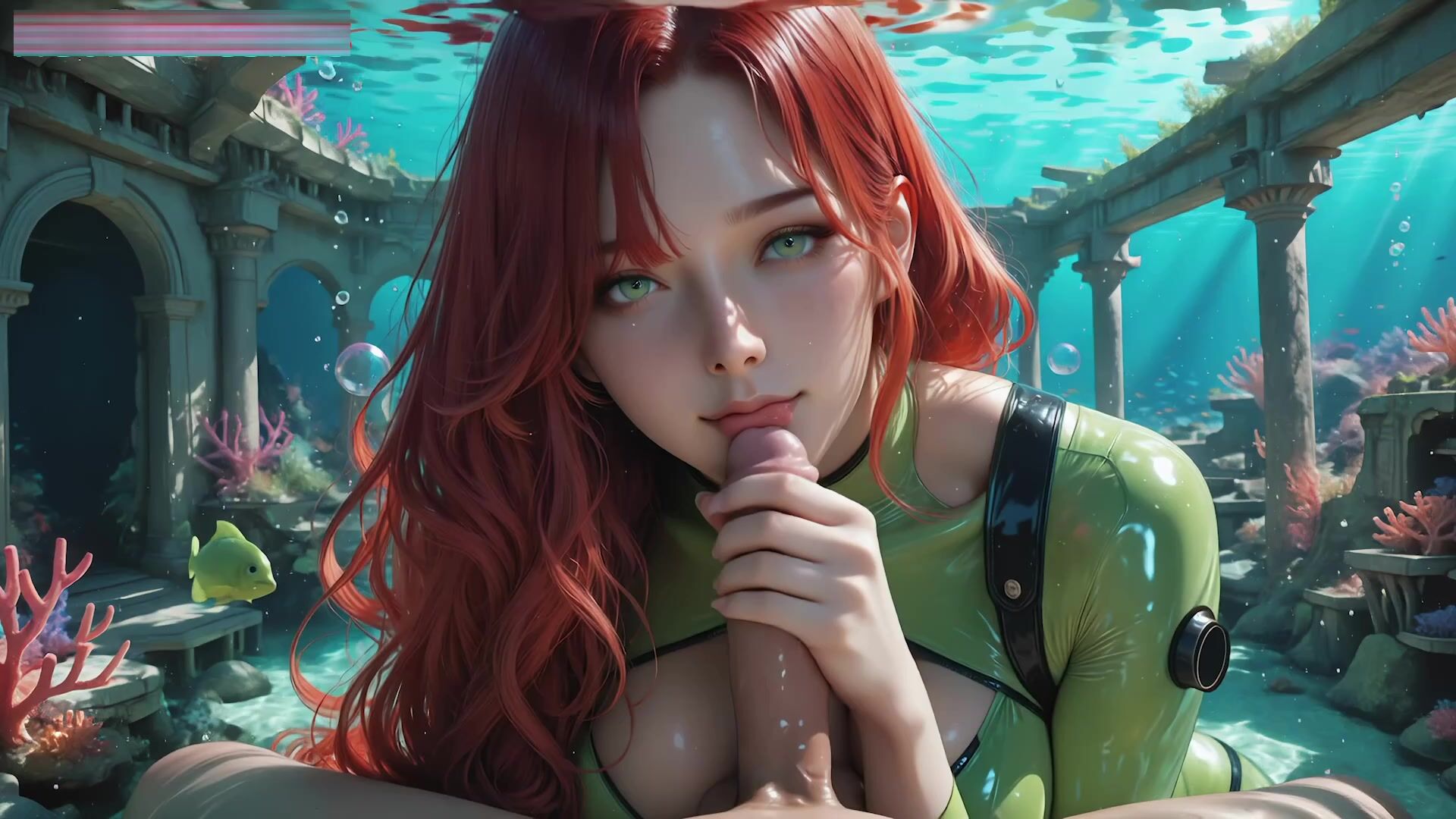 Redhead Bodysuit Underwater: Sucks Cock, Boob Job, Then Fucked Hard - AI standing sex handjob boobjob body suit colored hair doggy style big natural tits natural tits underwater fantasy redhead bodysuit blowjob boobjob hard pounding