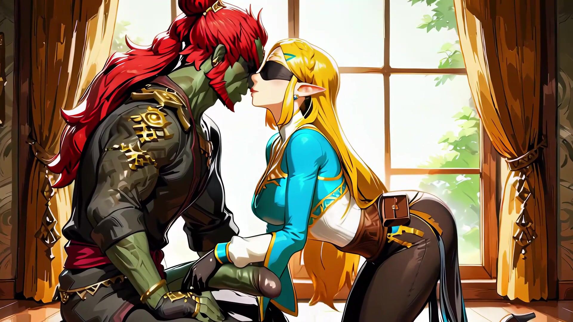 Zelda Princess Trick Blindfold! OMG!! No Goblin!! - AI gaming blindfold bubble butt on her knee anal doggy style Zelda princess blindfold tricked anal doggy pounding fantasy