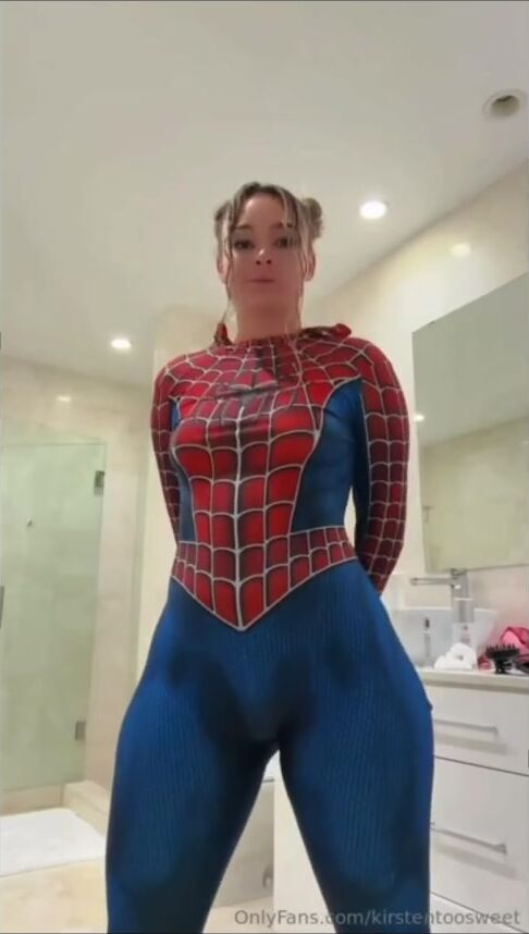 Kirstentoosweet sexy spider-girl striptease with spider-girl tease action. Kirstentoosweet strips out of sexy spider-girl costume teasing you with every curve. Spider-girl tease striptease and seductive cosplay solo play.