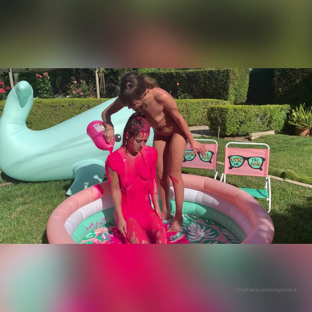 Riley Reid, Two Lesbian Beauties Slimey Paint Play in Pool