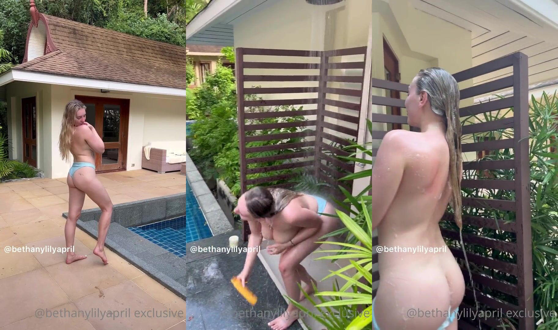 Bethany Lily Blows Up: Wild Sexy Babe With Big Natural Tits Poolside Naked Shower — Puro Placer