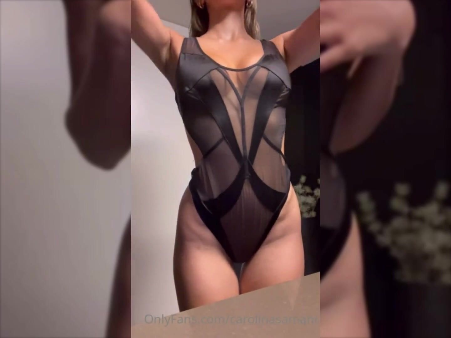 Carolina Samani, Black Sheer Lingerie Nipslip Moment