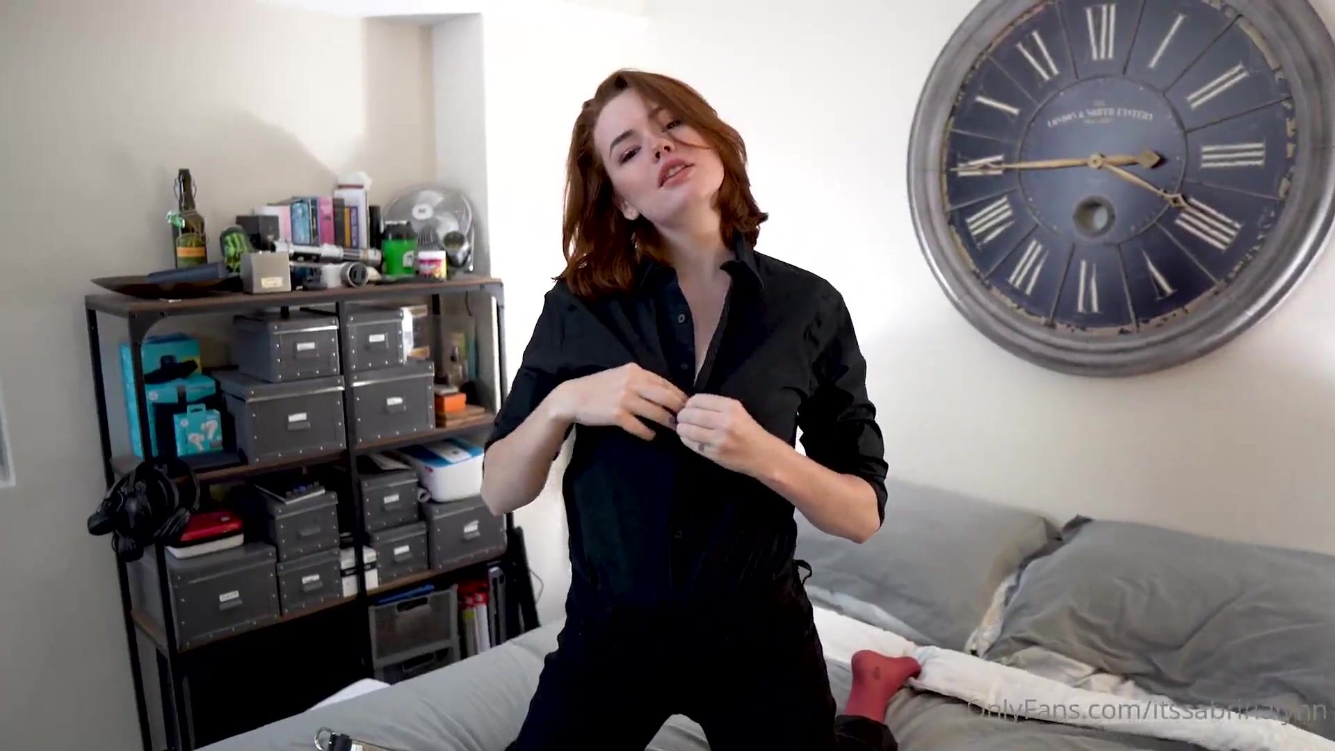 Sabrina Lynn, Striptease into Sexy Red Lingerie